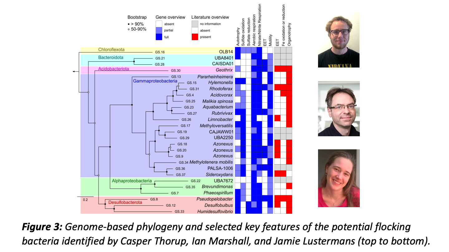Several years ago, Jesper J. Bjerg, then a PhD student in the Microbiology group at Aarhus University, sat in the dark Raman microscope room of DOME, University of Vienna, measuring the cytochrome redox state of individual cable bacteria to follow their electron transport (see https://doi.org/10.1073/pnas.1800367115) – and nothing worked. While becoming increasingly impatient, suddenly something in the microscope caught his eyes: hundreds of tiny bacteria were swimming in a tight flock around the oxygen-free part of a cable bacterium; it looked as if they were dancing and having a party!