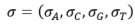 denotes a composite DNA letter that represents a 25%, 25%, 50% and 0% chance of seeing A, C, G and T respectively. Writing a composite DNA letter at a given position of a DNA sequence is equivalent to producing (synthesizing) multiple copies (oligonucleotides) of the sequence, so that in this given position the different DNA nucleotides are distributed across the synthesized copies according to the specifications of