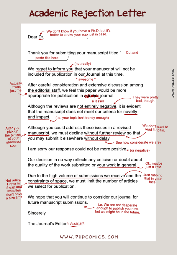 Academic Rejection Letter by PhDComics, http://phdcomics.com/comics/archive.php?comicid=1888