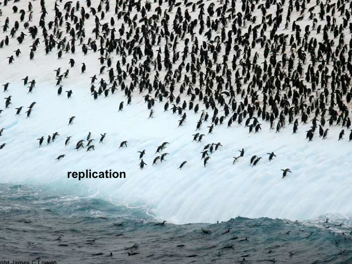 Even penguins get the flu - it's not known, however, whether the virus makes these birds very sick....After I read this article in Science News for Students, I decided to use a waddle of eight penguins to depict incoming flu vRNPs. A group of penguins on land are called a 'waddle', those in water are called a 'raft'. I used the analogy in the summer of 2015, at the IMLS retreat of University of Zurich to a largely non-expert audience made of developmental biologists, molecular biologists, and proteomists. After a few slides, the oohings and ahhings I heard from the audience indicated I made a good choice.