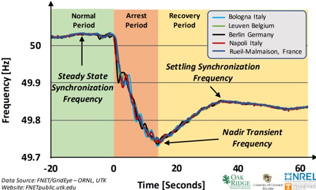 The synchronization of parallel connected generation sources is paramount to a reliable power grid operation; the lack thereof may result in any disturbance yielding sustained oscillations and a loss of stability. Synchronization in a power network can be interpreted as a stable state when the pace of evolution of the electric angle of all generators across a network are equal. The pace of evolution of electric angle is device frequency, which is the network coupling variable; when synchronized and in steady state, frequency will be consistent across the network. Each generator that establishes a local voltage waveform exhibits a frequency that evolves according to power export; this relationship is commonly known as frequency response.