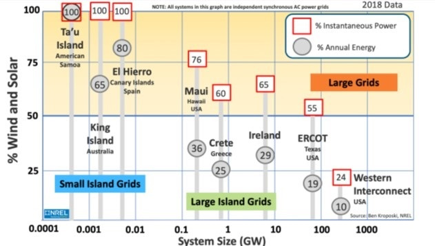 Power grids are massive, critical infrastructure systems whose reliability is paramount to the economic welfare and national security of the served population. Thus, assuring stability and resilience in this new landscape with large instantaneous and annual shares of variable renewable energy sources is pivotal. Although the decarbonization of power systems is underway and accelerating quickly, the annual and instantaneous penetration levels of renewable energies remain relatively low in medium and larger system (see Fig. 1). This leaves a broad range of associated technical challenges; those experienced today in smaller systems (at the scale of small islands), while on the horizon for larger systems (at the scale of continental interconnections), that must be solved to ensure the reliable operation of power systems.
