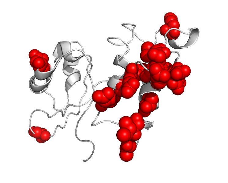 Our work shows that DCA accurately captures most of E. coli’s genetic context. By studying the sequences of species that are closely related to E. coli, we also suggest that genetic context does not rely on rare strong interactions between a few residues but on a dense network of many small couplings. In particular, residues that are not in direct physical contact with one another but contribute to the stability of the same domain in the 3D fold of the protein seem to be epistatically coupled. For instance, when comparing the amino-acid sequence of the L11 protein of 50S subunit of the ribosome in E. coli and in Yersinia pestis, we observe a strong epistatic signal: the amino acids fixed in Y. pestis are far more adapted to Y. pestis’s background than to E. coli’s one. When looking at the 3D structure of the protein, we observe that most of the fixed differences cluster together (red spheres, Figure 3).