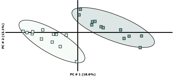 Figure 1: The Principal component analyzed (PC) plot derived from multivariate analysis demonstrates a clear separation between sexes in post-hatchling animals.