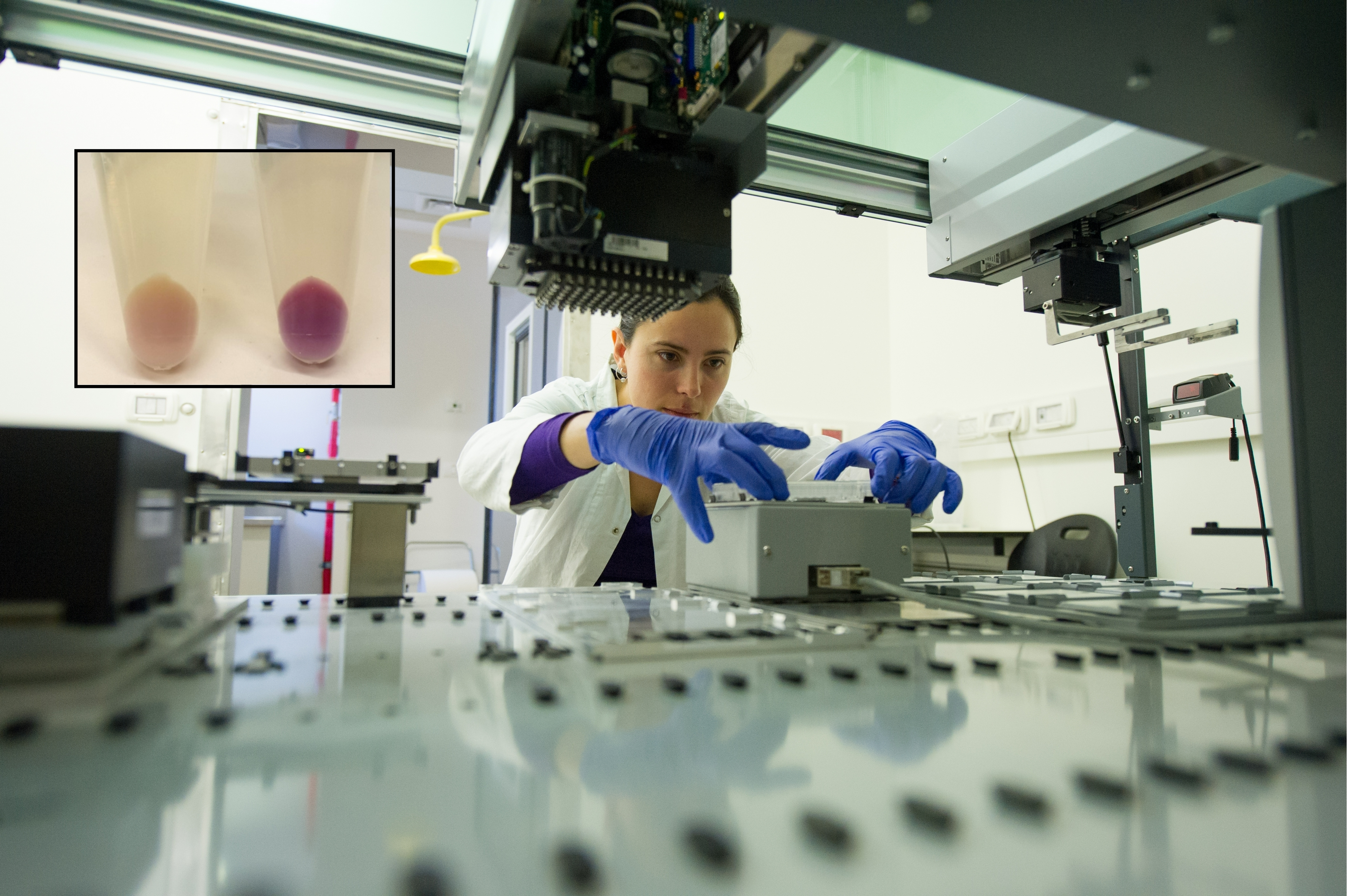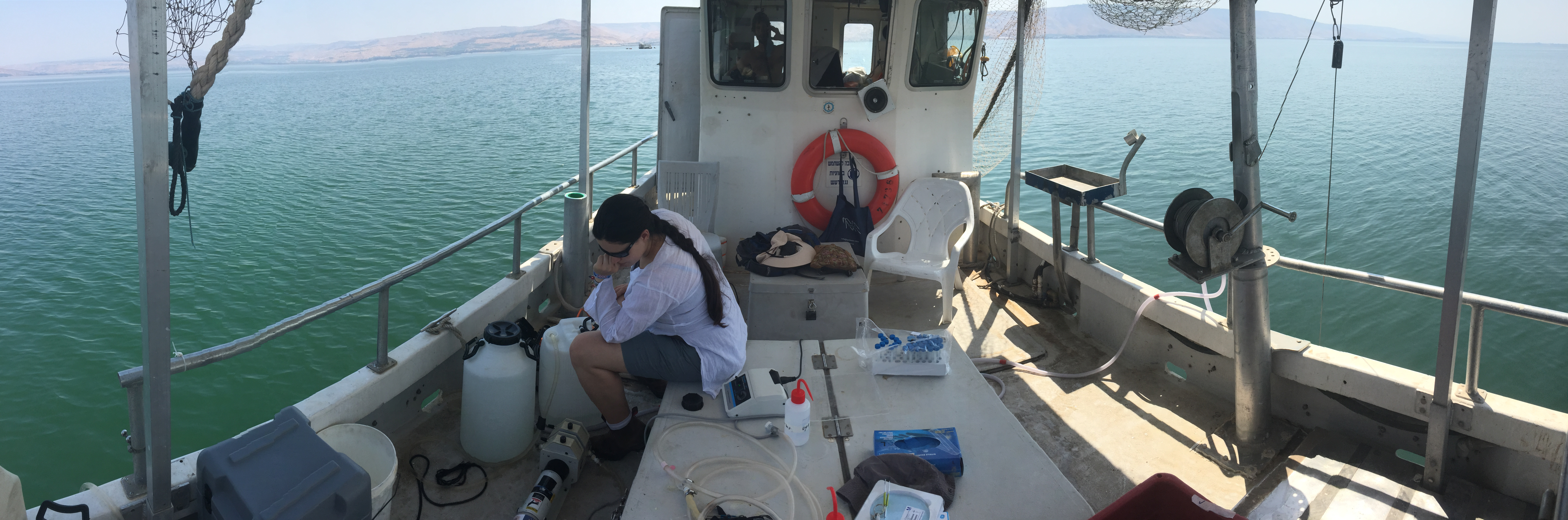 The second library screened was from a freshwater lake (Lake Kinneret / the Sea of Galilee). This time we were also scoring positive clones by color. One 96-well-plate, #48, gave a single clone with a distinct deep purple color (see insight in the figure below). This color was observed only when retinal was added, so we were expecting a known microbial rhodopsin. To our surprise, and actually disbelief at first, no rhodopsin gene was observed in the sequence obtained from this clone (a 32 kb insert). As we were flying blind, Tn5 mutagenesis screening was used to detect the gene responsible for the purple color. This gene turned out to code for a 7 trans-membrane helices (TM) protein with a lysine in the 7th TM and inverted membrane topology compared to any known rhodopsins. In addition, this protein had less than 15% identity to known microbial rhodopsins, the reason it was not detected in BLAST searches as a rhodopsin. The detection of this new protein enabled us to find a whole portfolio of novel rhodopsins, heliorhodopsins, in archaea, bacteria, algae and even in viruses (Pushkarev, Inoue, et al. 2018).