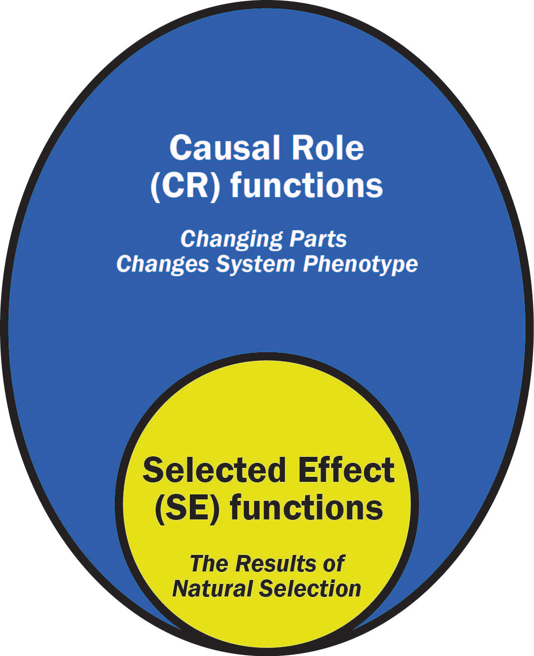In 2012, the ENCODE project published the results of an enormous effort to characterize every functional element encoded by the human genome. Surprisingly, they detected measurable biochemical activities for ~75% of the human genome, much more than the <10% that had been estimated to be under evolutionary selection. This caused debate to erupt over which value is correct. Ultimately, in a sense they both are: the 75% value is based on a “Causal Role” (CR) definition of function that describes a trait’s mechanism but not its evolutionary history, and the <10% value arises from a different “Selected Effect” (SE) definition of function that describes an adaptive trait’s evolutionary history.
