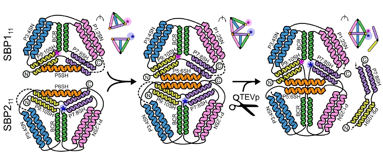 Regulation of the assembly of a protein coiled-coil trgonal bipyramid by proteolysis [4].