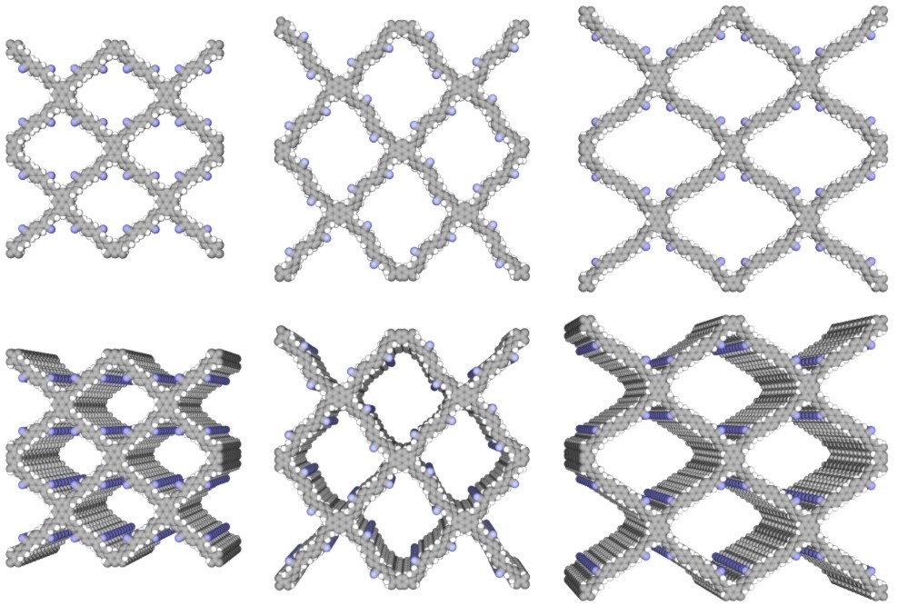 In contrast to traditional luminescent plastics that basically have a linear or one-dimensional chain structure, we topologically designed a two-dimensional (2D) porous tetragonal network that enables the polymer backbones to grow along both the x and y directions and to be interwoven periodically at knots. The network was made from all sp2 carbon units by connecting luminescent pyrene knots along four directions with emissive linear arylenevinylene linkers to constitute a fully π conjugated sp2 carbon covalent organic frameworks (sp2c-COFs, Figure). Moreover, to each linker, two nitrile units were introduced as side groups so that through the extended 2D π conjugation, the network greatly increased its anti-radical and also anti-oxidation capabilities.
