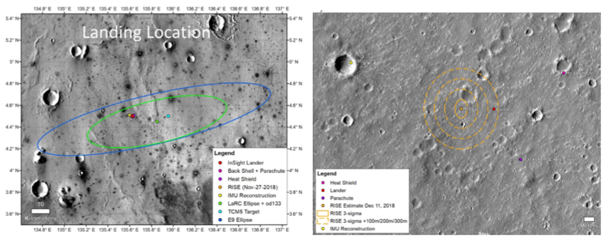 Before chasing after the liquid core in the rotation of the red planet, RISE had another mission: locate the lander on Mars, right after touchdown, when nobody yet knows where it is. So even before the pizzas of our landing celebration got cold, I was already on my computer processing the first 52 data points, freshly received from NASA-JPL via a private and secured channel. The goal was to pinpoint the location of the lander, reducing the landing ellipse uncertainty of hundreds of kilometers to only a few hundred meters, such that it could be pictured by the high resolution camera of the Martian orbiters. After struggling with the new format of RISE data, I ended up with a (hopefully) accurate prediction of the lander's location. A few hours later, the coordinates were uploaded to Mars Reconnaissance Orbiter (MRO), which took a photo of the place and found the lander! It was an exciting and challenging time.
