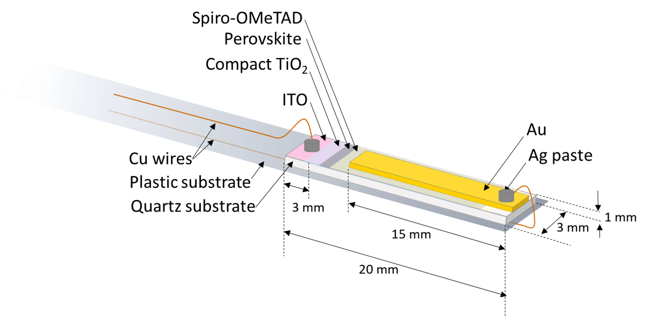 Figure: Schematic structure of electrical contacts and wires of the perovskite solar cell in an ESR sample tube.