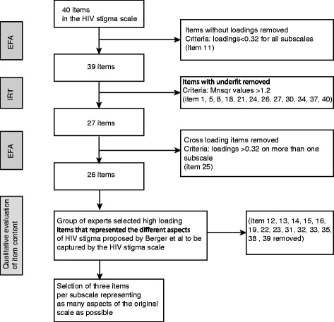 Figure 1. Visualisation of the item reduction process going from 40 to 12 items. Reproduced from the original publication featured here.