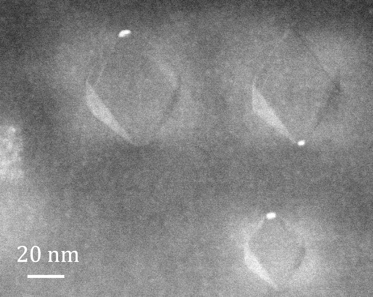 Since it was nickel, we tried to detect a magnetic signal to learn something about its phase, but no signal was detected. Soon after, we turned to the TEM – a turning point in the study. We targeted a few microinclusions, which indeed revealed the presence of nickel with minor iron. The diffraction pattern corresponded to carbonate. But there was something else; each microinclusion was surrounded by numerous nanoinclusions of solid nitrogen. This was a surprise, but there was one more. At one apex of each solid nitrogen octahedron, we noticed a tiny, bright spot, only 4-8 nm in size (Figure 2). I remember us sitting there, Yael, Oded, Sergei Remennik, and I, throwing out ideas about what elements this phase could contain. Then I said “nickel”, which seems obvious in retrospect, but not at the time. The energy range was set, the detector tuned, and suddenly… the signal appeared: a Ni-rich phase with minor iron and no oxygen or sulfur. It was a moment of enlightenment.