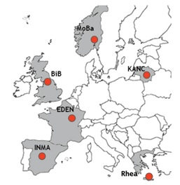 Figure 1. Cohorts participating in HELIX. The HELIX subcohort includes a subsample of BiB, EDEN, INMA, KANC, MoBa, and RHEA cohorts.