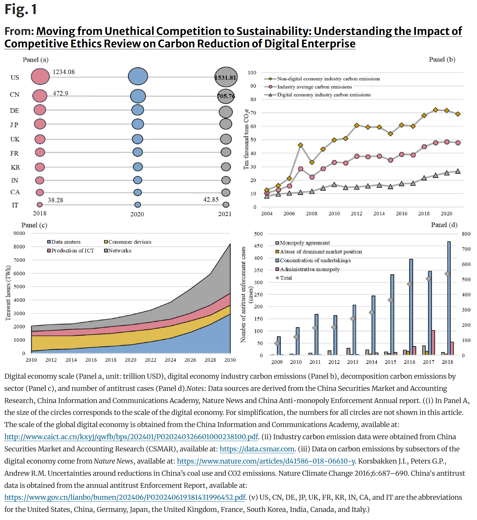 Our research analyzed a comprehensive dataset of digital enterprises from 2004 to 2021. We found that the implementation of strict competitive ethics reviews (antitrust enforcement) acts as a powerful catalyst for carbon reduction.