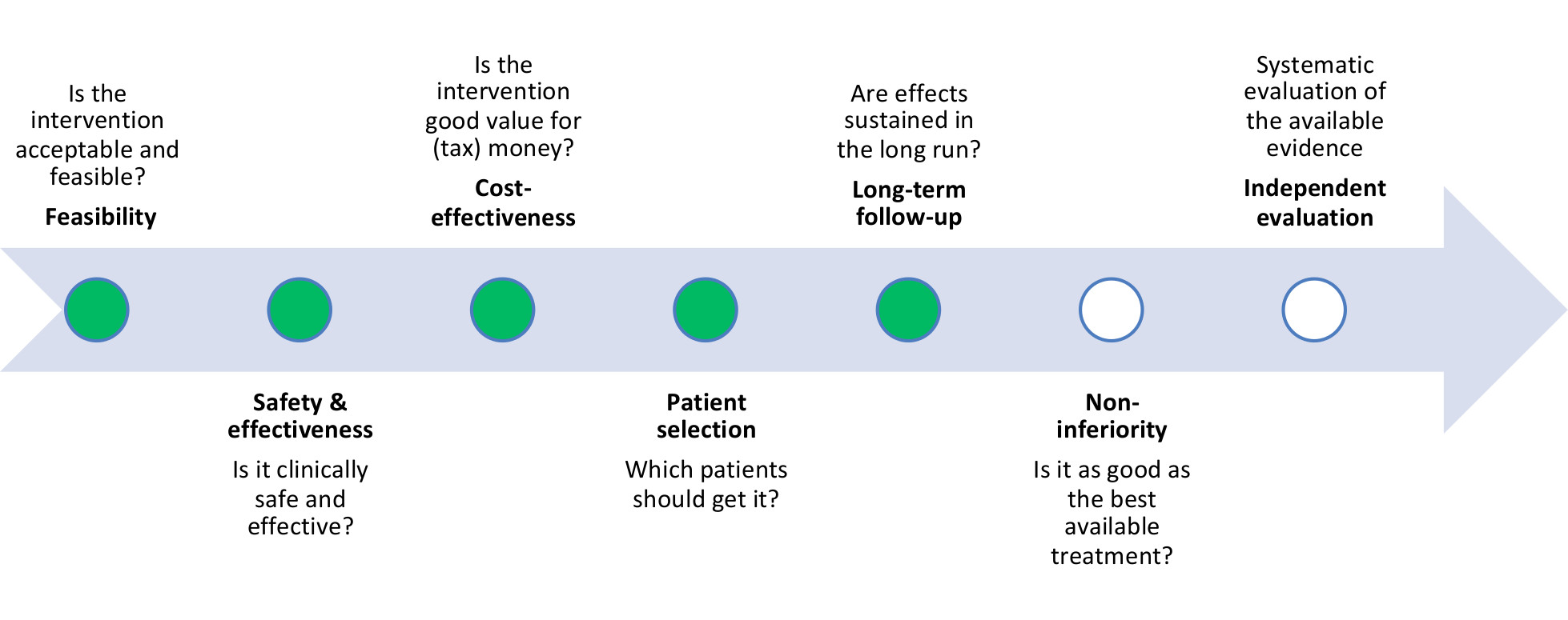 Thus, the Covid-19 crisis has been a major catalyst for the development and implementation of innovative digital mental health treatments. We regard this as a positive step but there is a risk that interventions are implemented in regular healthcare before they have been rigorously evaluated. Here, we wish to highlight that the process of development and scientific testing takes time, and that robust standards of efficacy, safety and cost-effectiveness should be applied before making novel digital interventions widely available to patients.