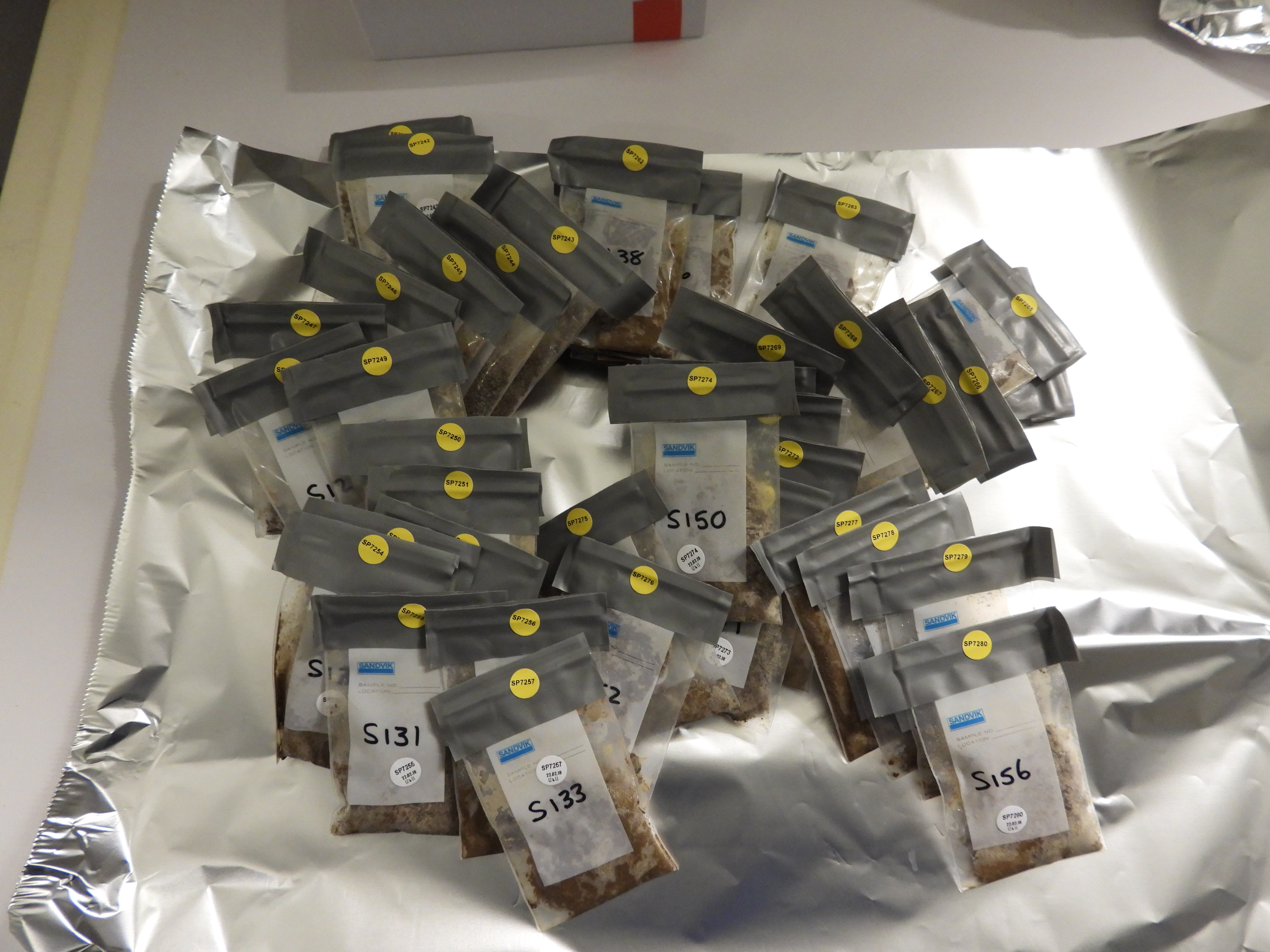 Figure 2. A selection of sediment samples collected from Denisova Cave’s South Chamber (Photo Credit: Elena Zavala)
