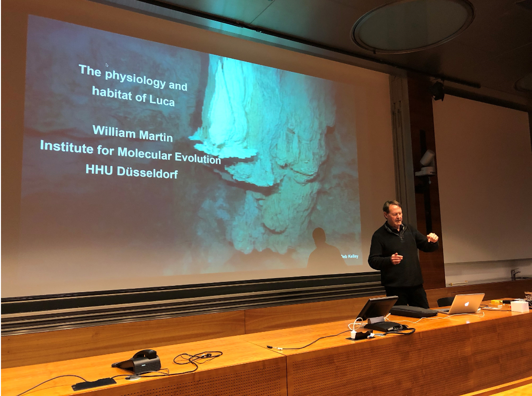 The origin of life on Earth remains a mystery unsolved, and so does eukaryogenesis — the black hole at the heart of biology, as expressed by Nick Lane in his 2015 book "The Vital Question". Since these questions are so central to biology, yet largely overlooked in teaching, Profs. Julia Vorholt and Ernst Hafen invited first-year biology students to join a dedicated "The Vital Question" book club during the spring semesters of 2018 and 2019 to learn and discuss about the problems involved in understanding and investigating these topics. The discussions during the meetings were lively and centered around the theories behind the book including much of the work by William F. Martin, Professor of Molecular Evolution at the University of Düsseldorf. Encouraged by the outcome, we invited Prof. Martin to give a seminar on the origin of life and were glad to learn he accepted. Prof. Martin gave a captivating talk on his research concerning the origin of life in hydrothermal vents on May 22nd 2019. The lecture was filled with students and faculty members. His seminar was followed by a round-table discussion at the Institute of Microbiology at ETH Zurich, where we, the students, had the opportunity to ask questions.