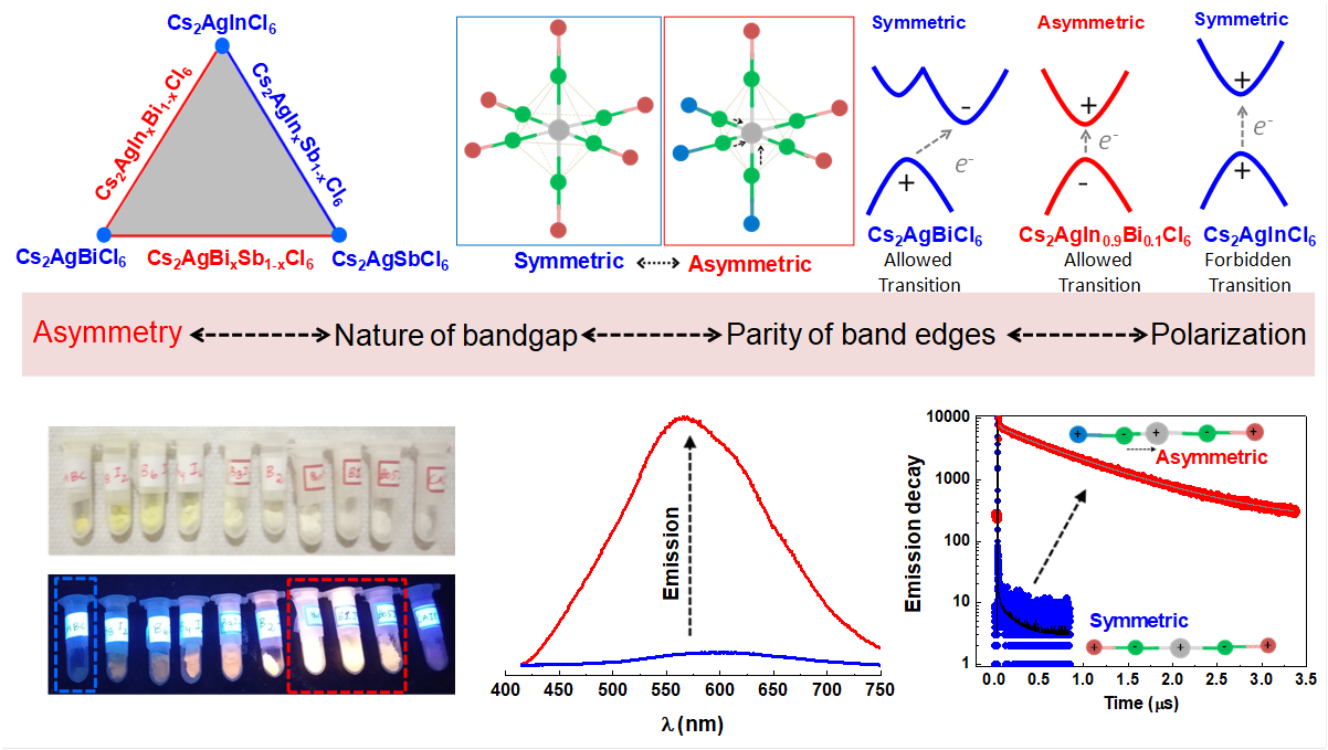 In our recent work, we have provided a clear design strategy for creating intense white light emission in halide double perovskites (HDP) by creating ‘asymmetry’. Two key questions are answered: (i) how to create asymmetry? and (ii) what the role of asymmetry in emission is?