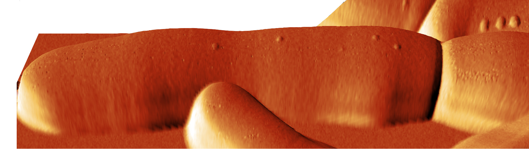 Discovery in microbiology has often benefitted from the development of new tools and techniques for describing bacterial cell processes like cell division. To that end, the genes and proteins involved in division site selection have painstakingly been discovered and their roles characterized for the past several decades. While the reported molecular mechanisms explain in part how division site selection occurs in some bacteria, they are unable to explain why physically division takes place in one specific place. We adapted in Georg Fantner’s engineering lab at the École Polytechnique Fédérale de Lausanne (EPFL) an atomic force microscope (AFM) that “feels” and probes the surface of rod-shaped actinobacteria, like Mycobacterium smegmatis, a model organism used in John McKinney’s microbiology lab for studying tuberculosis.