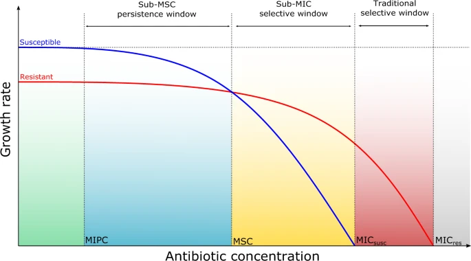 Antimicrobial resistance is predicted to be the leading cause of death globally by 2050 resulting in 10 million deaths per year, many caused by antibiotic resistant bacterial infections. Implementing mitigation strategies to limit the spread of antibiotic resistance would help limit both morbidity and mortality in the future. The environment is an underappreciated reservoir of both antibiotic resistant bacteria and antibiotic resistance genes including indigenous environmental bacteria that have evolved resistance over evolutionary time and human and animal associated bacteria that are introduced through wastewater and faecal pollution. In addition, approximately 70% of antibiotics are excreted by humans and animals in an active form and can also enter waterways. The lowest concentration at which increased resistance is observed is called the minimal selective concentration (MSC).