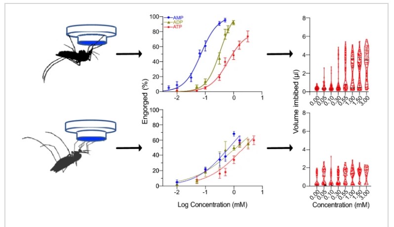 For example, it has been well established that Aedes aegypti require higher concentrations of the molecules to induce gorging. More recently, Matthew Mikenge and his team report in their paper in Parasites and Vectors their study of Aedes aegypti and Anopheles gambiae sensitivity to adenine nucleotides.