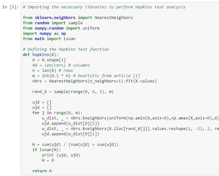 The final code line below is to apply the built Hopkins' Test function into the imported data set: