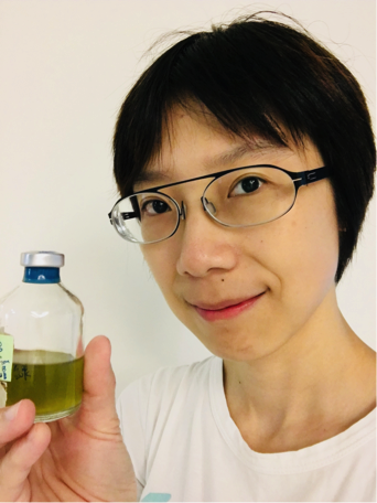 (Dr. Shan-Hua Yang, the first author, and the culture of endolithic GSB)