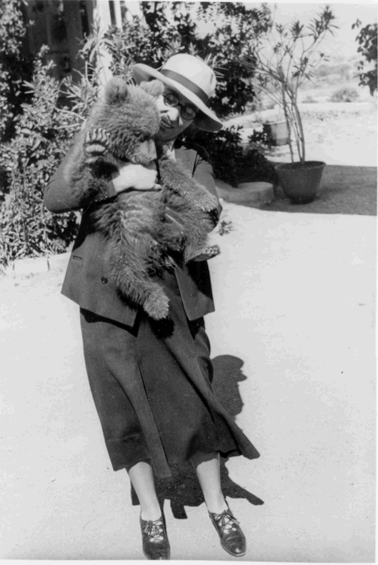 Garrod (main figure, standing) and a bear (held in arms). CC-BY-NC-ND 4.0 from the Garrod Photographic Archive held at the Pitt Rivers Museum, University of Oxford.