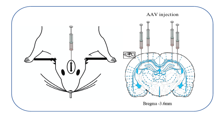 Experiment 2: A second group of naïve rats was randomly divided into an AAV-control microinjection group and a AAV-MKP-1 microinjection group (N = 9). Rats received bilateral injections of AAV virus in the hippocampus (Figure 2A). Six weeks later, depressive-like behaviors and gene or protein expression changes were assessed using the same methods as in Experiment 1.