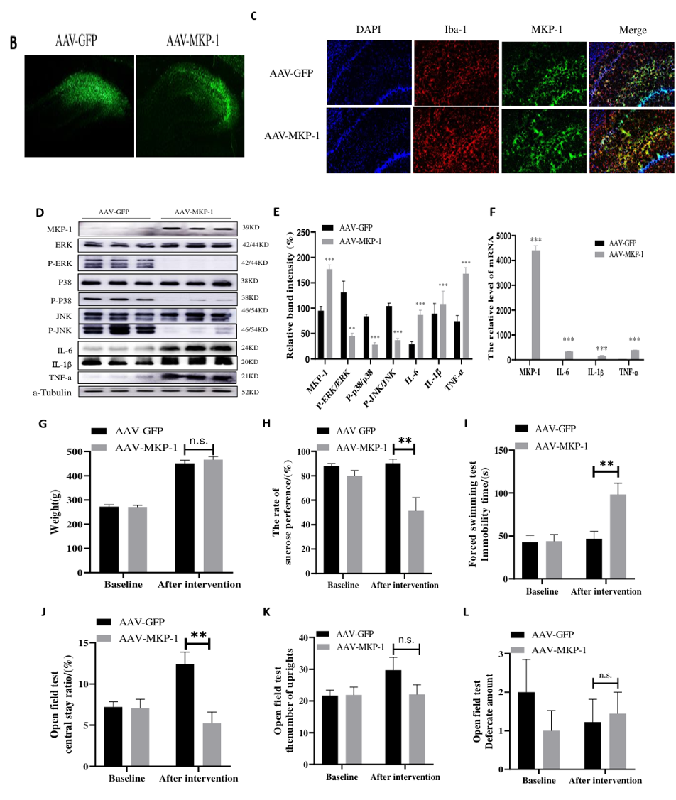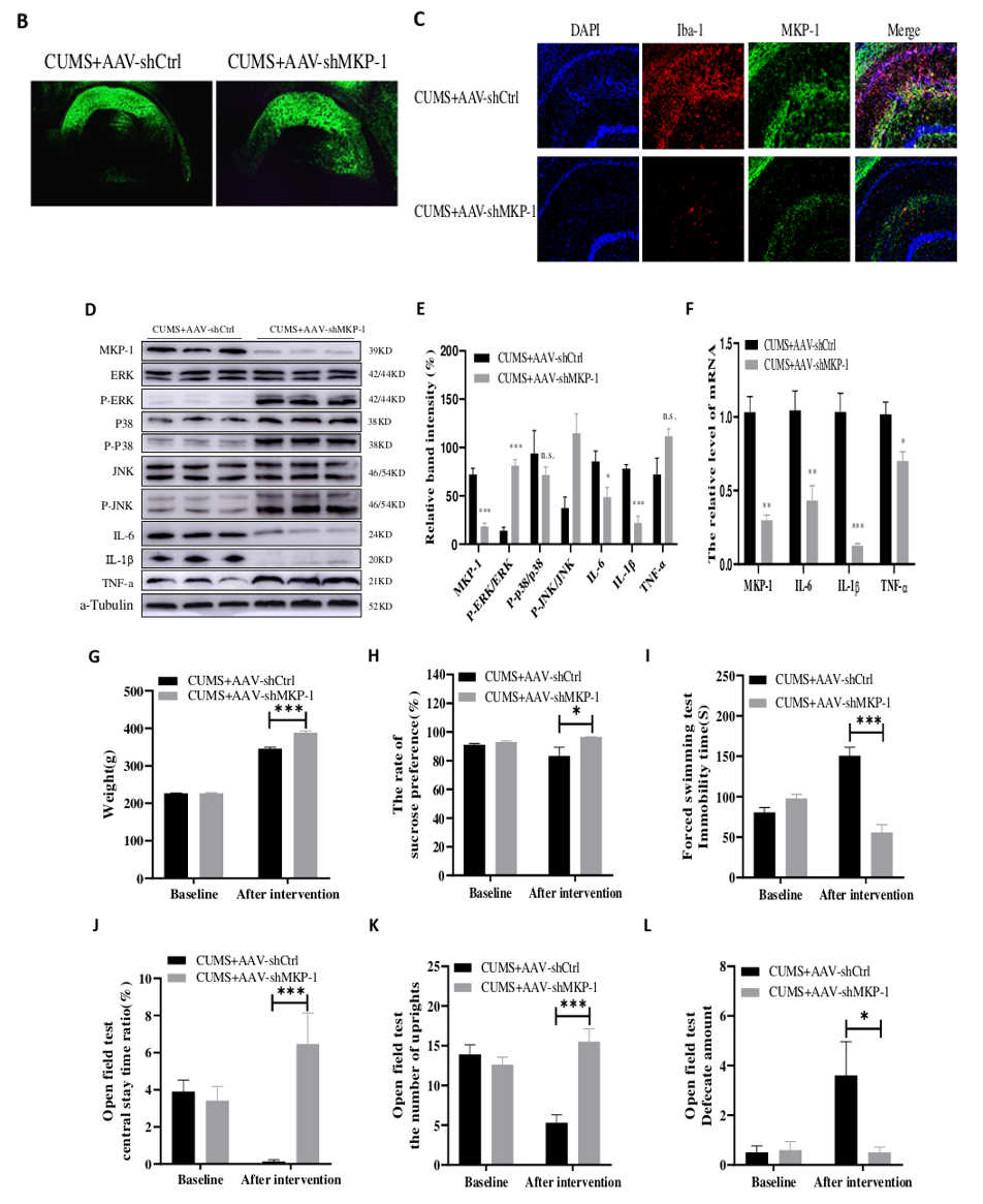 - Knockdown of MKP-1 in the hippocampus protects against CUMS-induced neuroinflammation and depression-like behaviors.