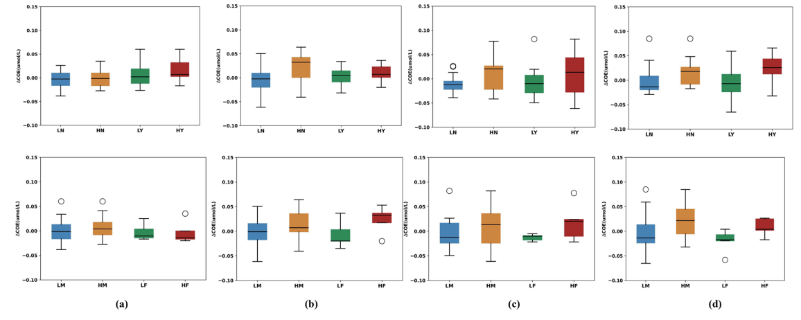 Besides, we also analyzed the influence on mental activity caused by sex and driving experience, using boxplots of in channel 8 about driving experience and sex. The boxplots of is shown in Fig 3. LN stands for the low-risk episode data about those participants who do not have valid driving experience; HN stands for the high-risk episode data about those participants who do not have valid driving experience; LY stands for the low-risk episode data about those participants who have valid driving experience; HY stands for the high-risk episode data about those participants who have valid driving experience; LM stands for the low-risk episode data about those male participants; HM stands for the high-risk episode data about male participants; LF stands for the low-risk episode data about female participants; HF stands for the high-risk episode data about female participants. For lead vehicle autonomous emergency braking in a short-distance scenario, the difference of between low-risk and high-risk episodes for those participants who have valid driving experience are more obvious the difference of those participants who do have valid driving experience; similarly, the difference of between low-risk and high-risk episodes caused by male participants that female participants.