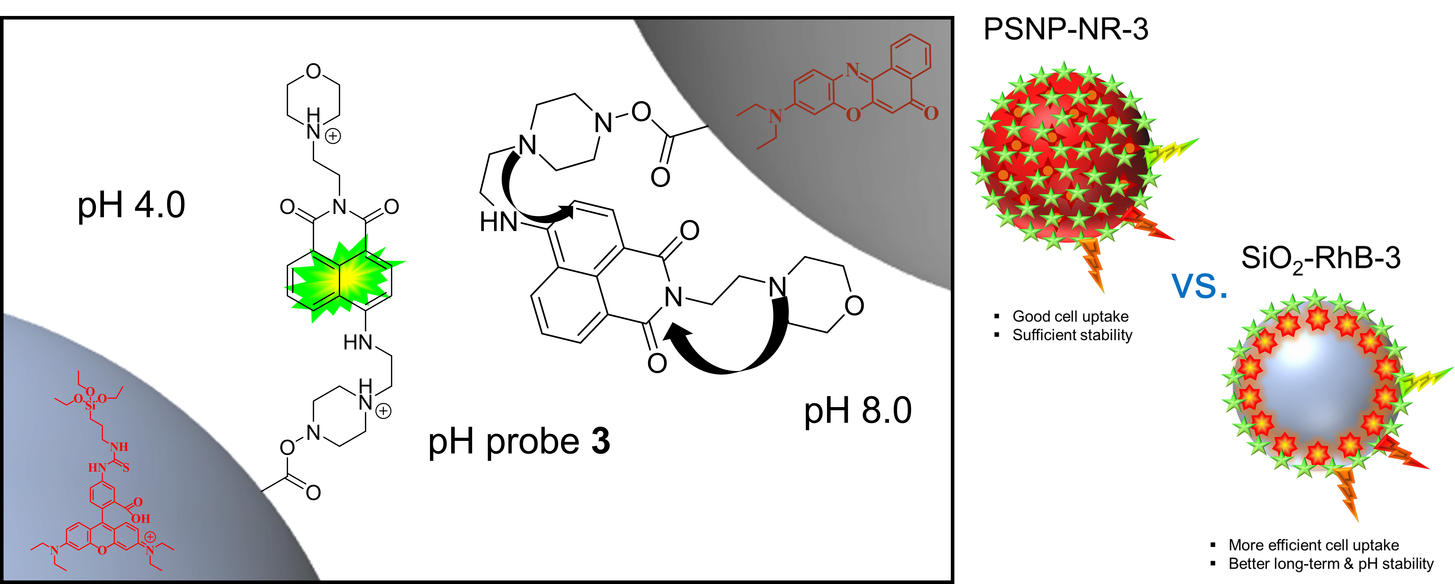 Generally, there is a high demand for reliable, versatile fluorescent pH sensors – especially for in vitro studies as pH is an important indicator of cell function.1,2 pH and changes in pH can be indicative of inflammation and certain diseases. Therefore, not only sensor dyes, yet also sensor particles are needed that are brighter than molecular systems, small enough to penetrate cells, non-toxic, and allow for the close-up optical monitoring of pH. A simple and straightforward method for the read out of such cell studies is fluorescence microscopy, which is minimally invasive and suitable for in situ measurements.3