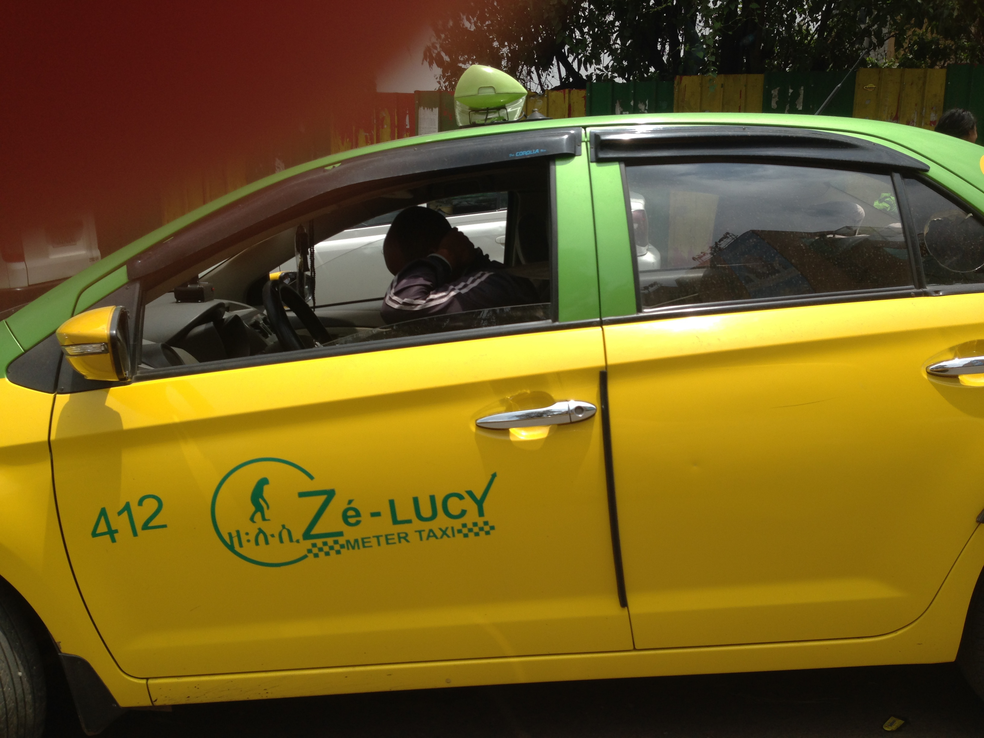 No photos of the real Lucy allowed, but her image is everywhere - (top) in the museum cafe miraculously, if anachronistically, amid the rock cut churches of Lalibela and (bottom) on a local taxi company. Ethiopians are very proud of her.