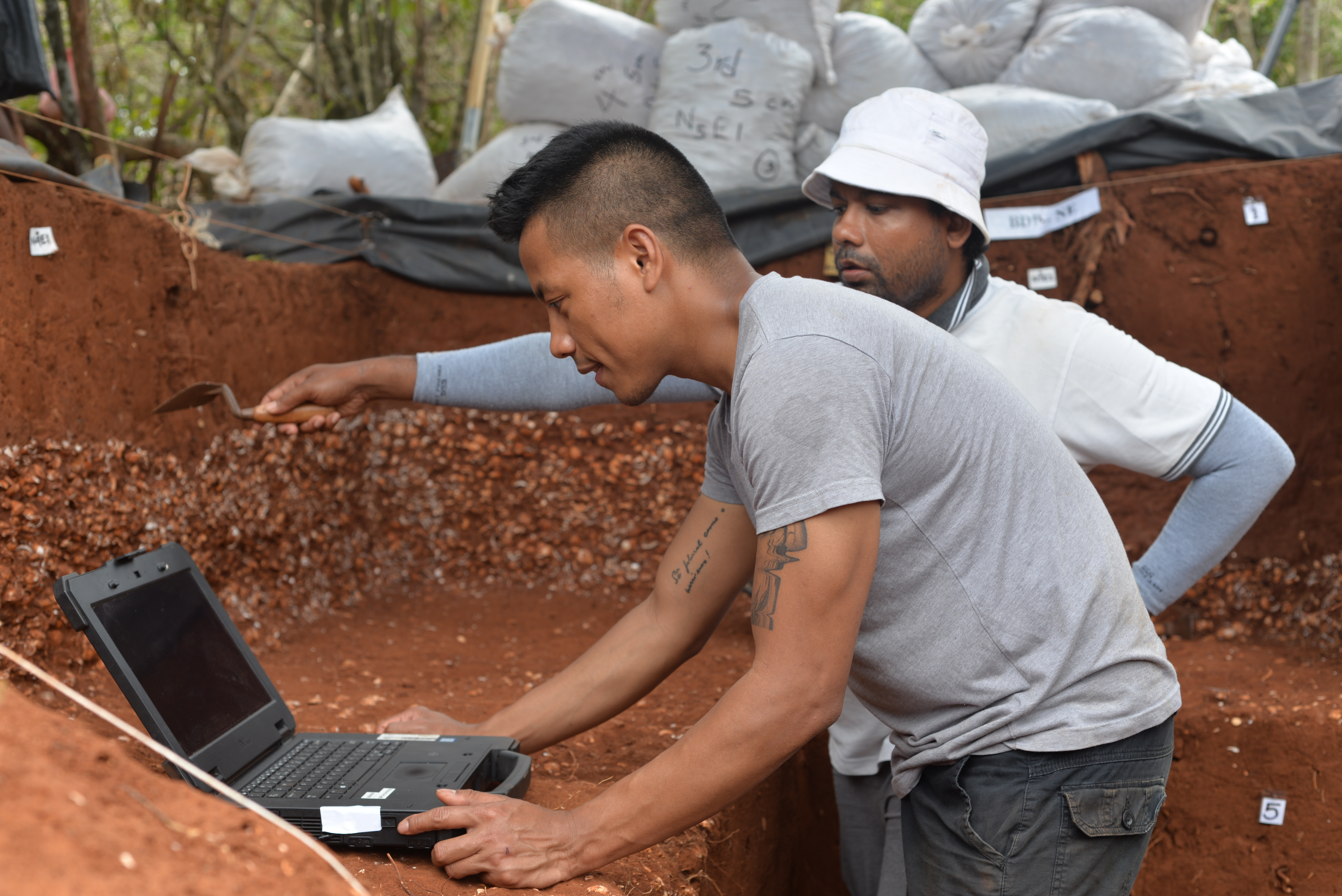 The next years were devoted to the analyses of the materials we recovered. COVID-19 delayed our plans significantly, as most of our materials were left in institutions in Sri Lanka. But we were working with amazing, dedicated researchers that went out of their way to make sure that our research progressed. Dr. Pat Faulkner from the University of Sydney led the painstaking analyses of the more than 1000 kg shells we collected. He and his team looked at, weighed and classified a total of 125,000 pieces of shells. Dr. Chris Clarkson studied the almost 5000 pieces of stone artefacts we recovered. Colleagues from the Spanish National Centre for Human Evolution conducted Optically stimulated luminescence (OSL) dating and Magnetic Susceptibility reading of sediment samples we managed to export out of Sri Lanka. The export process itself was tricky, as OSL dating requires the samples not to be exposed to light or any source of radiation- quite complicated when you need to take 2-3 international connecting flights (i.e. not checked-in and hand inspected, following EU protocols on import of sediments, etc).
