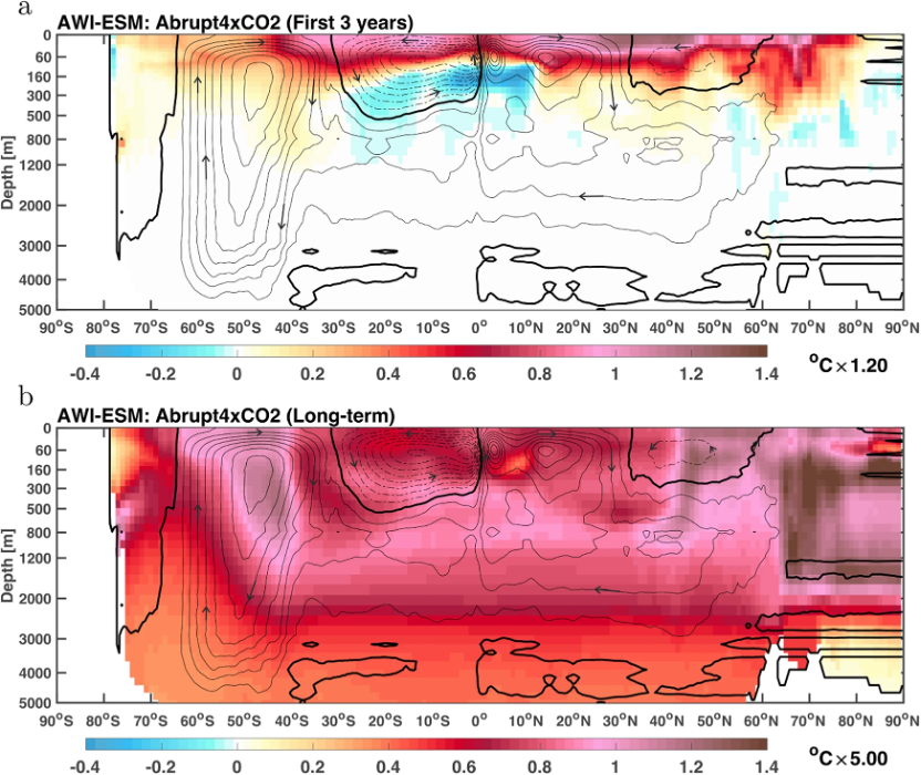 Our results point out a serious fact: even though the ocean surface temperature set another new record high this year, the current warming is still in its infancy. Ocean temperature will keep rising for thousands of years, even if greenhouse gas concentrations stop rising right now. The committed, but delayed warming over the subpolar ocean will have strong impact on the ocean-atmosphere circulation and has the potential to cause a sea level rise of more than 10 meters.