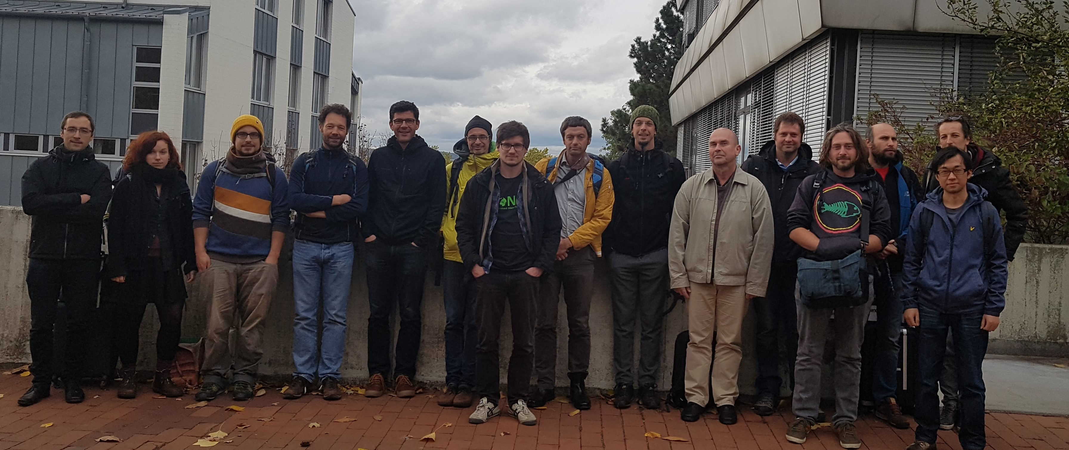 The GloNAF team at one of the annual meetings. From left to right: Wayne Dawson, Anna Schertler, Bernd Lenzner, Mark van Kleunen, Holger Kreft, Stefan Dullinger, Patrick Weigelt, Franz Essl, Marten Winter, Petr Pyšek, Martin Hejda, Trevor Fristoe, Jan Pergl, Qiang Yang and Robin Pouteau.
