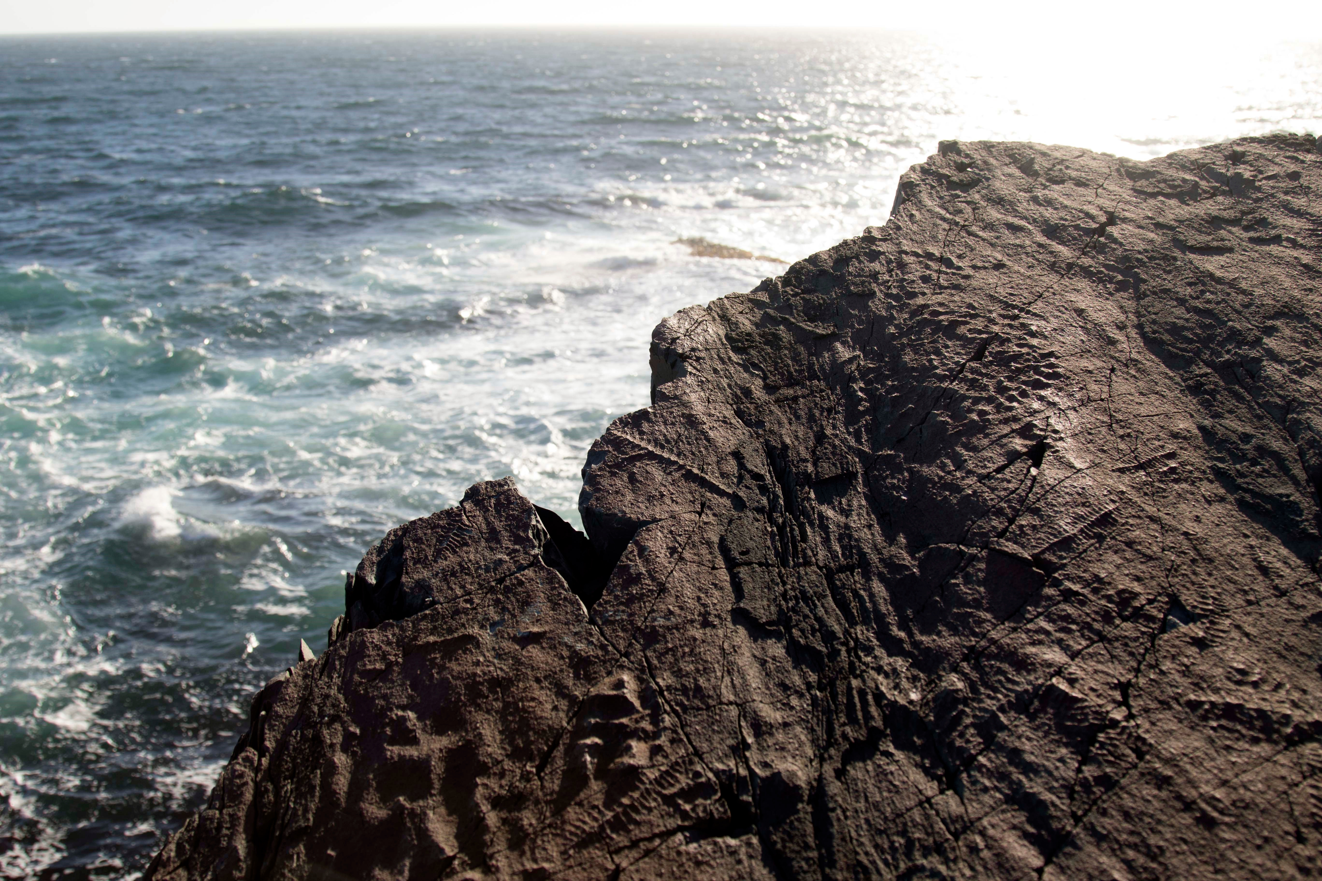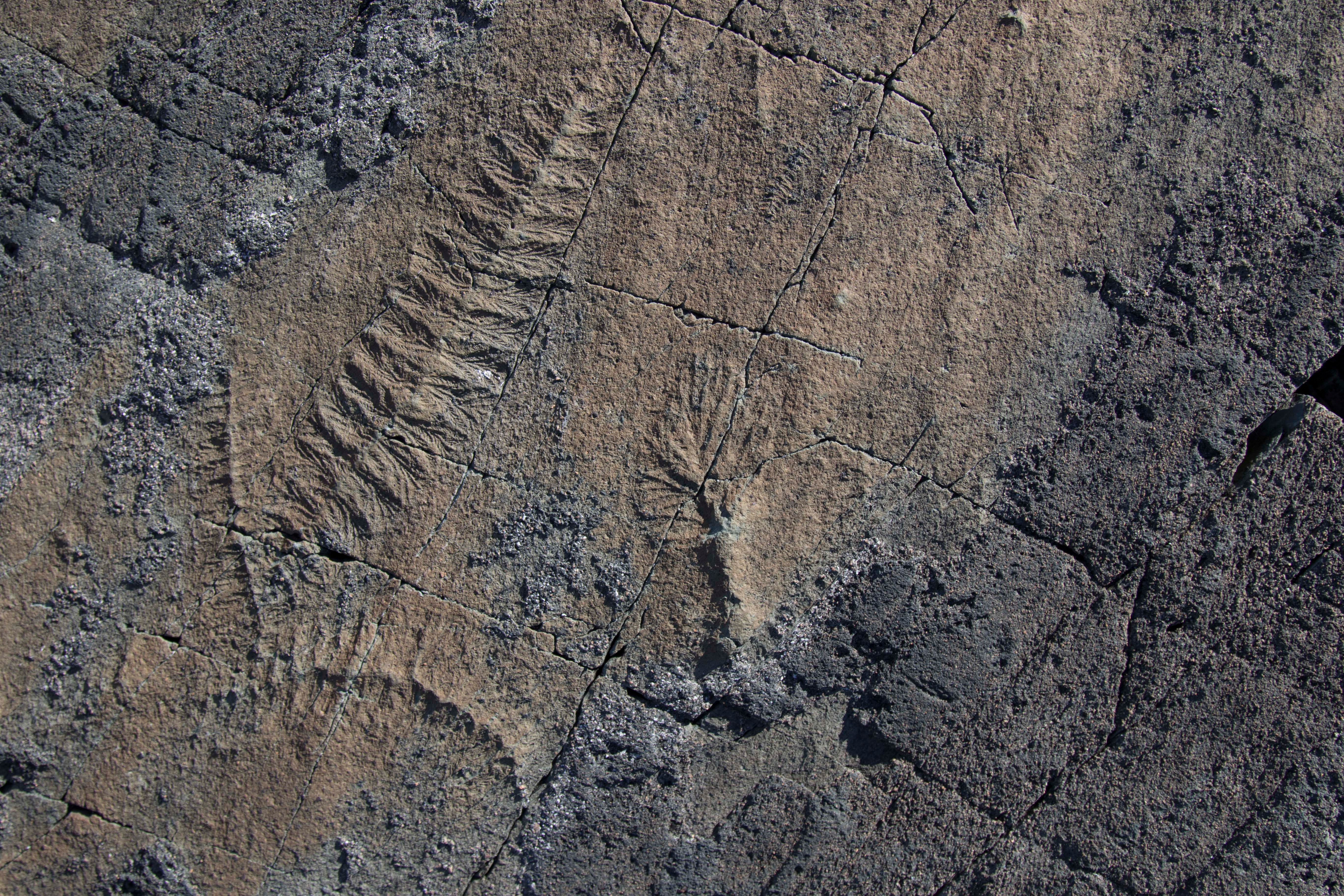 The E surface, Mistaken Point, Newfoundland, Canada showing immobile Ediacaran fossils preserved in-situ under volcanic ash. Credit: CG Kenchington.
