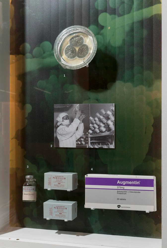 A history of penicillin, including a fresh Penicillium mold grown from Fleming's original sample.