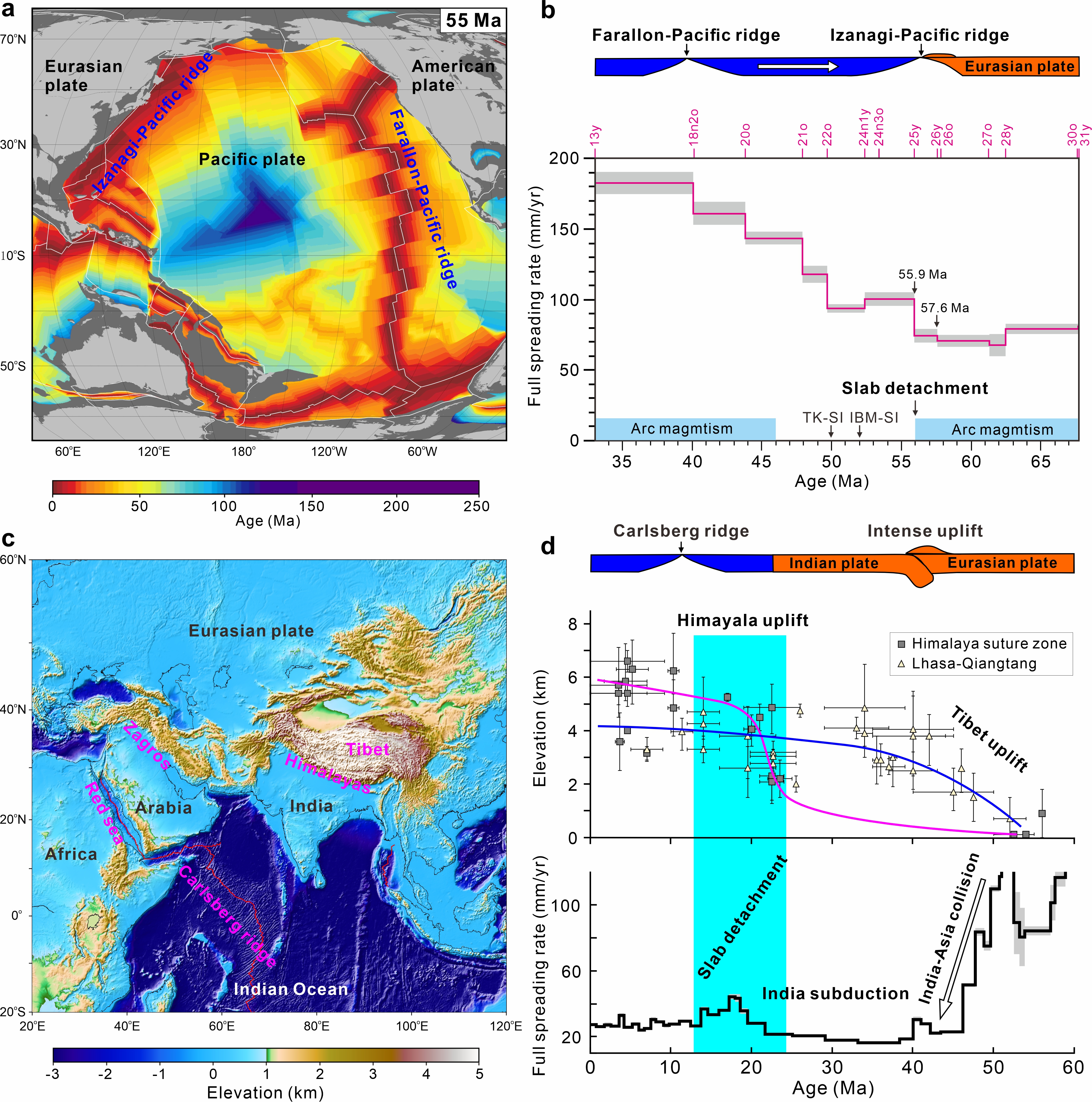 Then I was back to my scientific question. An interesting observation shows that plate convergences in different slab detachment zones are highly varied. The Himalayas orogen shows pronounced uplift. The Mediterranean-Carpathian and Zagros orogens show relatively modest uplift. In circum-Pacific subduction zones, episodes of slab detachment appear to have enhanced compression tectonics along the suture zones, but only with minor uplift (< 1.0 km) of overriding plates. The dynamic effect of slab detachment, especially considering the complex and variable nature of subduction-collision processes, has not been explicitly demonstrated yet.