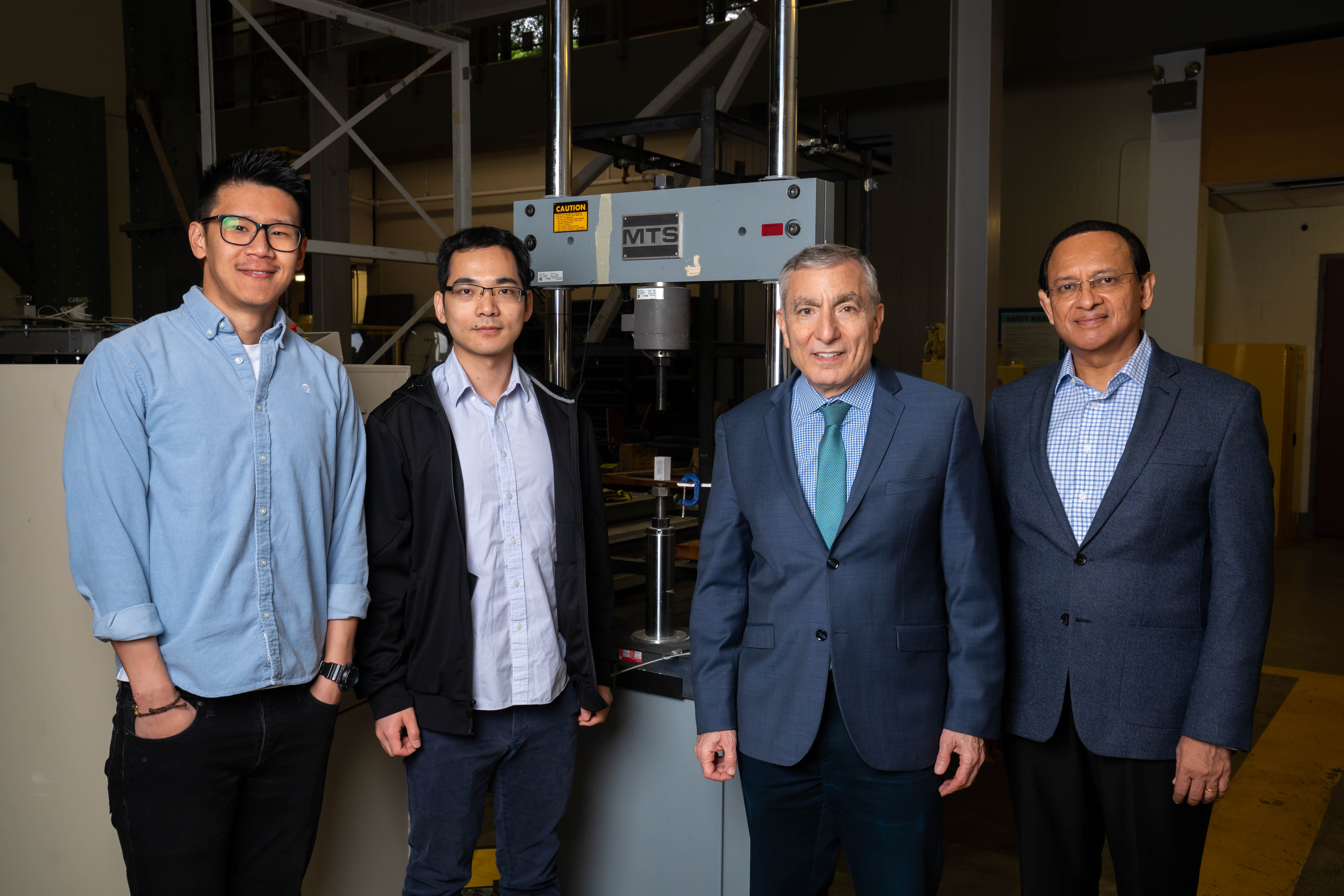 Some authors of the paper (left to right): Wei Meng, Bing Deng, James M. Tour, Satish Nagarajaiah (photo by Gustavo Raskosky)