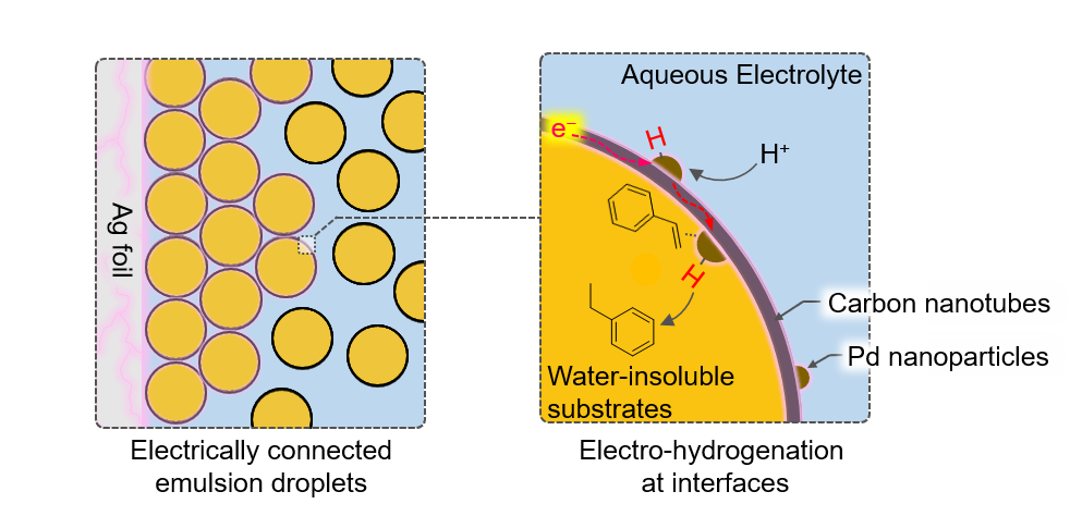 Due to the simplicity, versatility, and efficiency of the emulsion system, we believe to potentially open a way to the practical application of ECH to a wide range of water-insoluble organic substrates, such as biomass or biocrude.