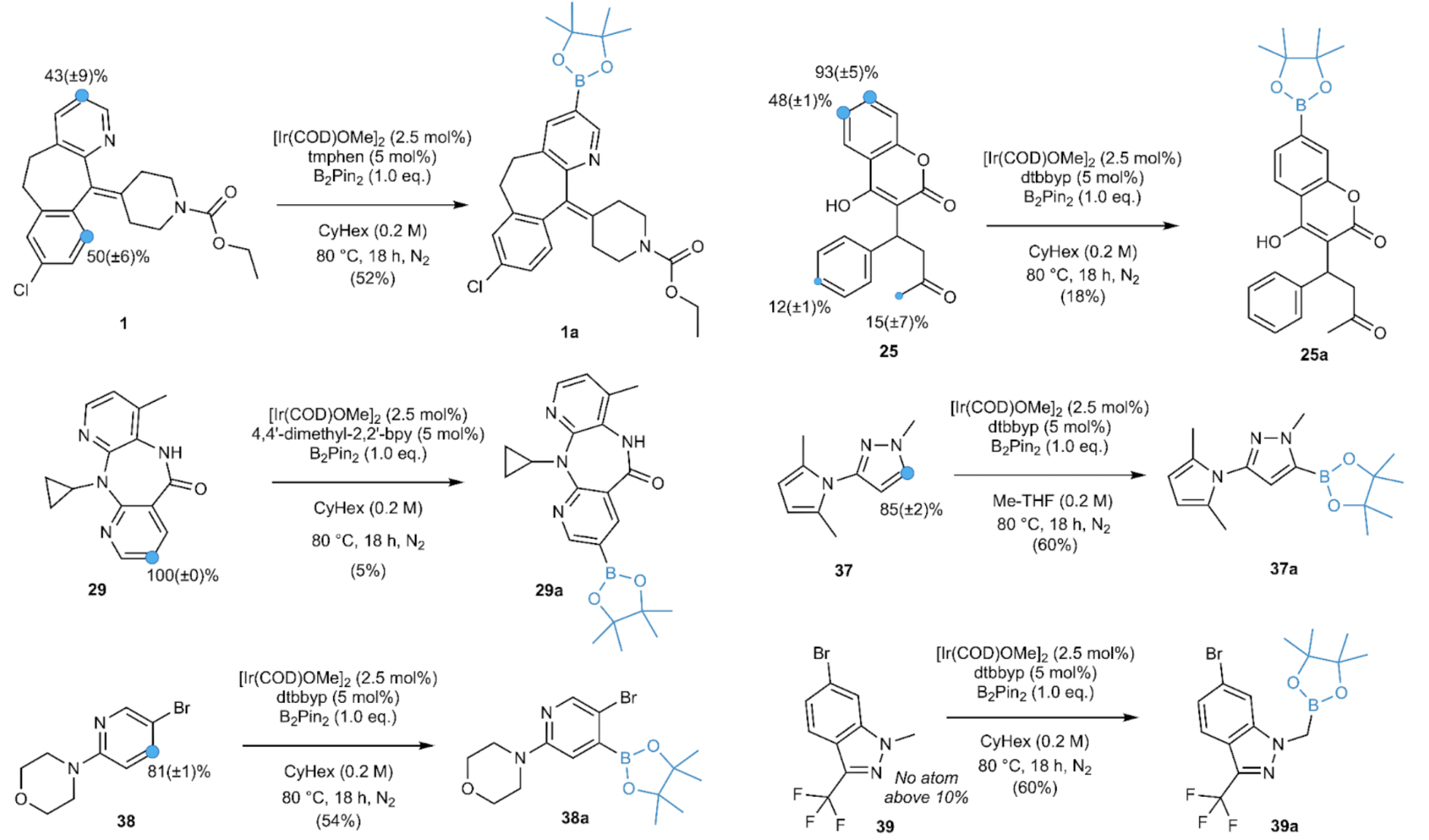 A critical challenge encountered by medicinal chemists when developing C-H borylation reactions for new substrates is the issue of regioselectivity, which involves predicting which C-H bond in an organic molecule will undergo a desired transformation. Our research demonstrates that GTNNs, once trained, can accurately forecast regioselectivity for substrates that fall outside the established distribution. They are also effective at handling various substitution patterns, encompassing diverse electronic effects and steric hindrances. Through prospective validation of the trained GTNNs on six novel substrates, including three drugs and three fragments, our findings indicate that the model correctly predicted five out of seven experimentally observed borylation sites [3].