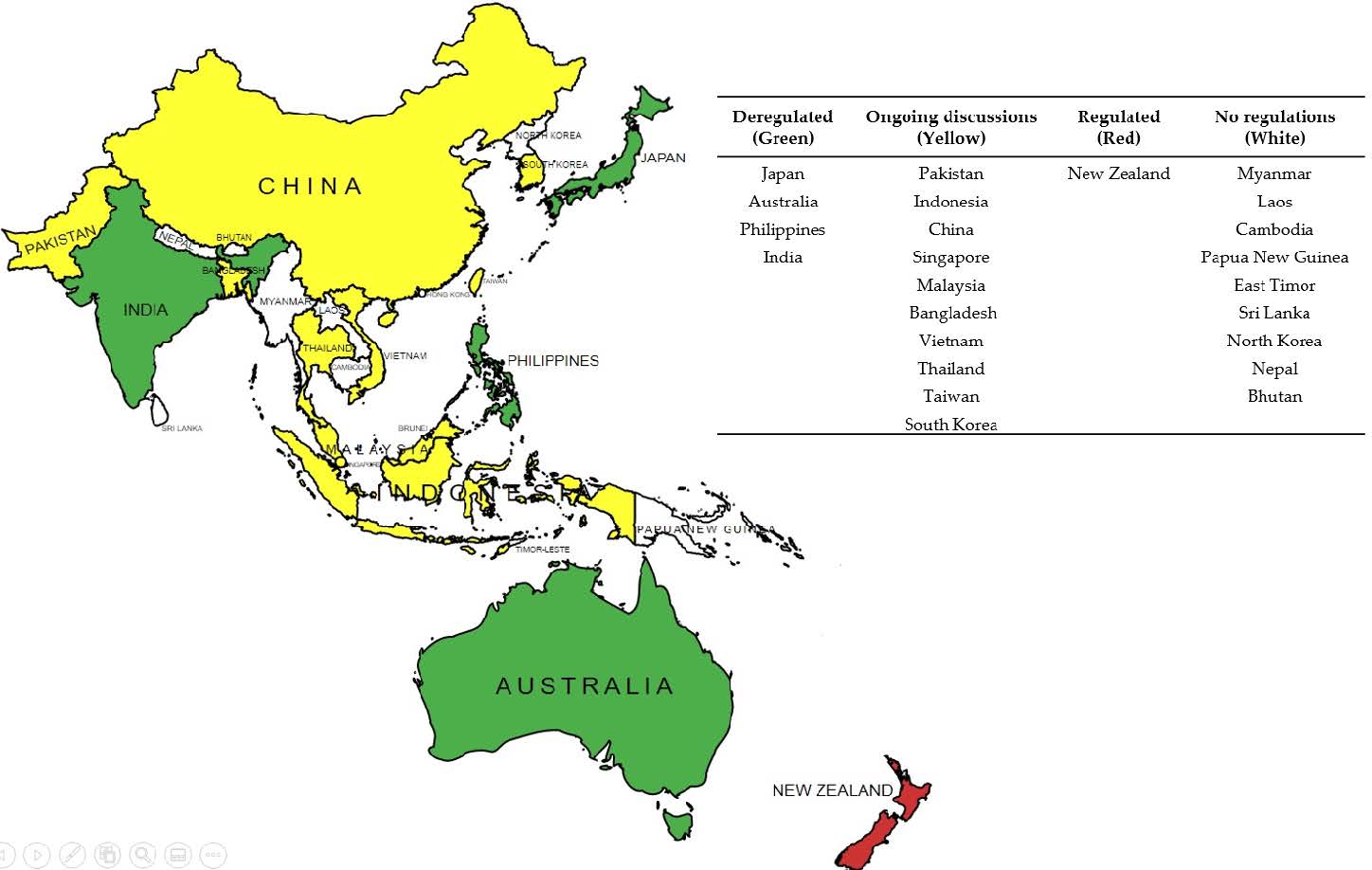 An overview of the current regulatory status of Asia-Pacific countries is shown in the Figure below.