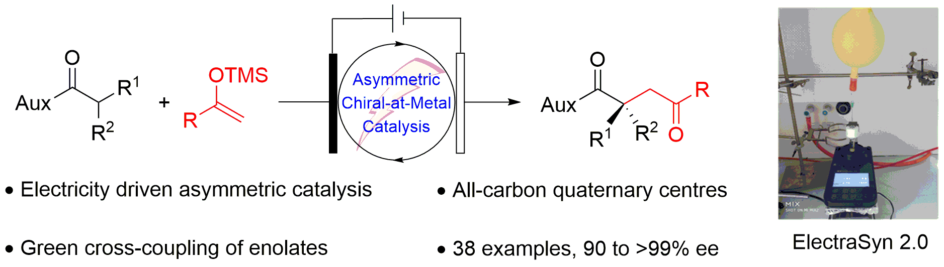 For more details, see our paper: "Electricity Driven Asymmetric Lewis Acid Catalysis". https://www.nature.com/articles/s41929-018-0198-y