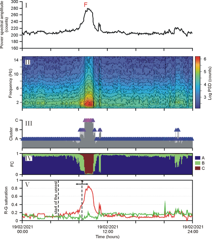 Applying SOM to long volcanic tremor data (seismic records spanning years), we were able to verify that such points of no return can be indeed identified. We designed a specific alert system for paroxysmal events, which focuses on recognizing these points; it gains robustness when the alert flag is reached at a sufficient number of recording stations. The criteria setting of such a multi-station warning system for paroxysmal events regards both the energy levels of the signal encountered in each seismic station as well as the number of stations in which these levels are reached. Suitable settings can be found using so-called 'Receiver Operation Characteristic' (ROC) curves (Fig. 3). These are based on the comparison of the “true positive” rate, where a true positive is a correctly flagged paroxysmal event, versus the “false positive rate”, where a false positive is encountered when the system raises the flag, but no paroxysm occurs. There is an intrinsic tradeoff between the two rates. By choosing a sensitive configuration, the rate of correctly identified events improves, but at the cost of a high false positive rate. We were able to establish settings regarding the number of stations as well as the intensity of the signal such that ~80% of events (90% for the whole year 2021) were correctly recognized with a number of false positives being less than one third of the true positives. Besides, more than 50% of the false positives were found shortly before the event occurred. These come as a precursor and may be welcomed by operators rather than being considered an error of the alert system.