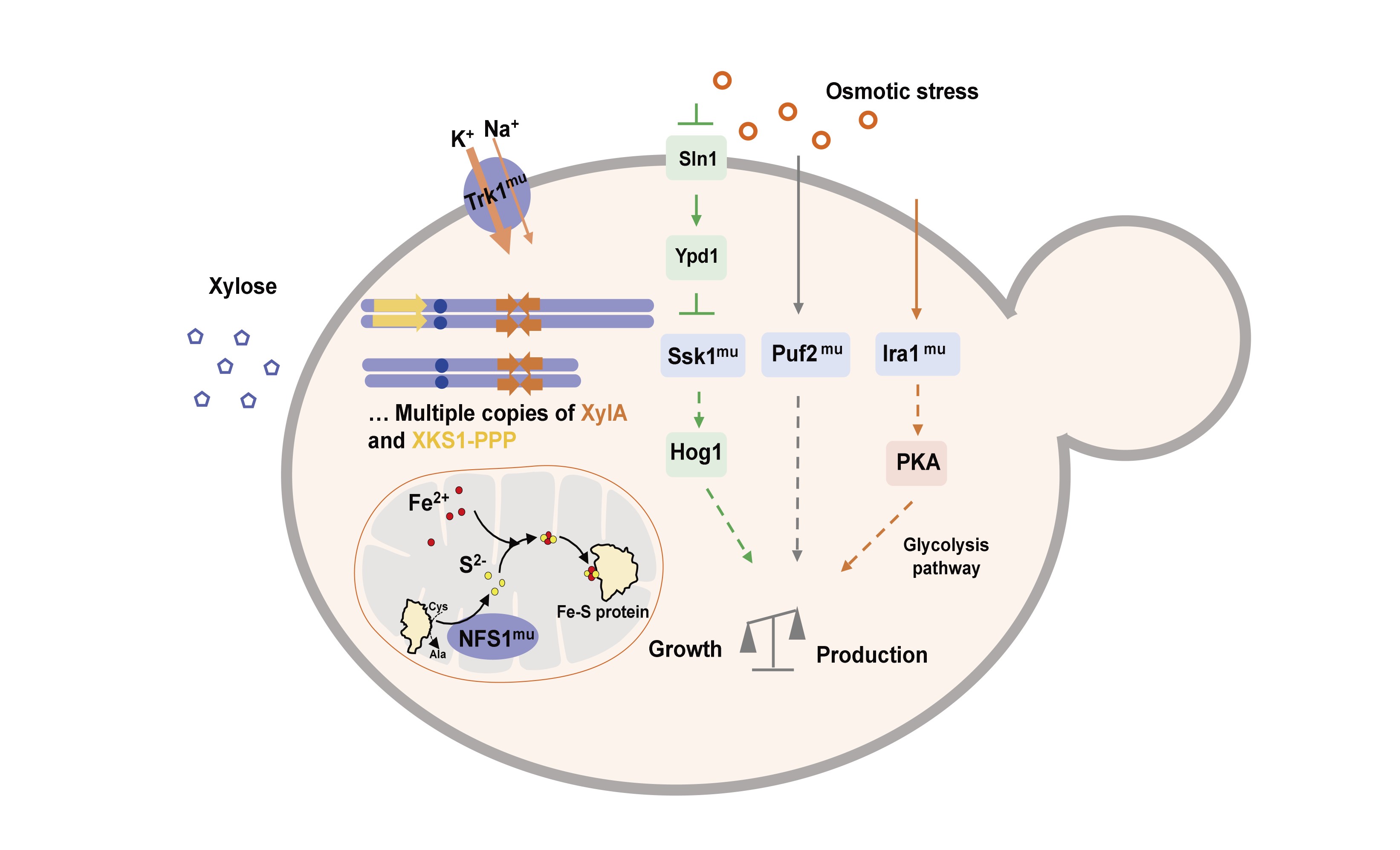 Started up with a yeast strain widely used for ethanol production from corn in China, my lab and the Shanghai R&D Center of Industrial Biotechnology under my responsibility identified sodium salts as the primary yeast inhibitors in the corn stover hydrolysates, and evolved an engineered yeast overexpressing xylose catabolism genes in xylose/glucose-mixed medium containing sodium salts. The full-evolved strain can efficiently convert xylose in the hydrolysates to ethanol. It not only met the success criteria of lignocellulosic ethanol production in China, but also outperformed all other strains that Novozymes had received for benchmark or received performance data. It has been used for the conversion of corn-stover in the US and bagasse in Brazil, reaching tens of thousands of tons cellulosic ethanol per year.