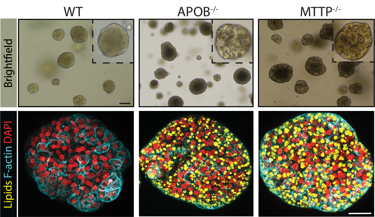 We also modeled two rare monogenetic lipid disorders (termed FHBL and ABL) that predispose to NAFLD, often already in pediatric patients. The effect of knocking out the causative genes (APOB or MTTP) was astonishing: the organoids developed spontaneous severe steatosis. We discovered that this was caused by the extensive accumulation of lipids that were originally generated from sugars.