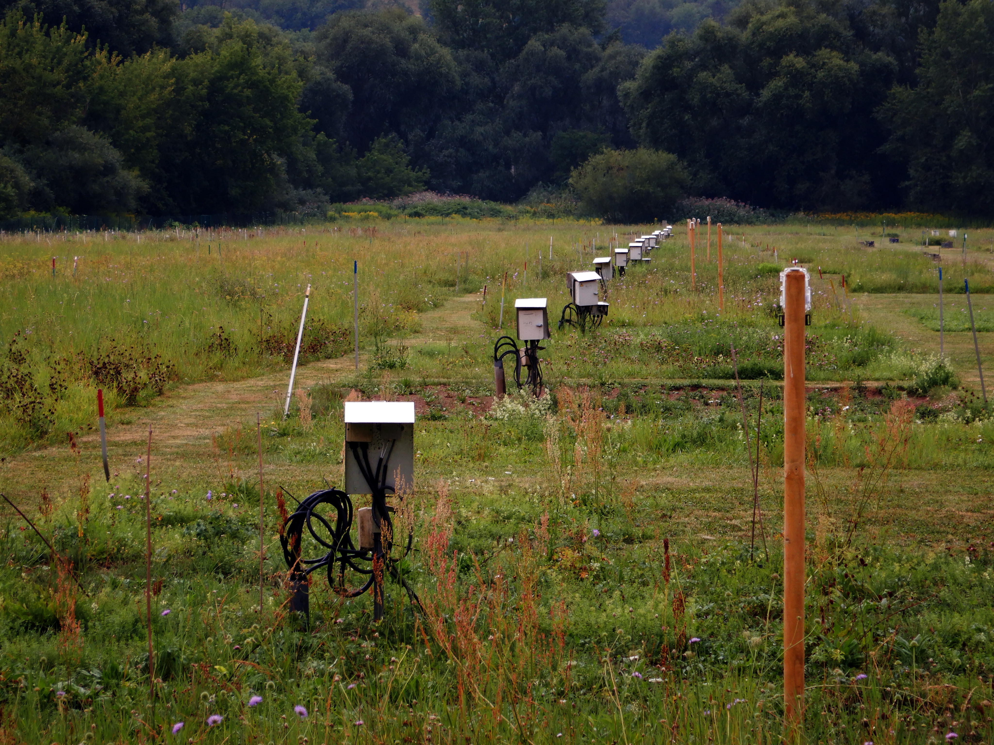 The Jena Experiment (2), a large grassland experiment in the heart of Germany, has helped us to investigate our hypothesis. Now running for 20 years (Happy Birthday!), numerous experiments on the effects of biodiversity have been conducted over the years. Tied to these experiments, many measurements have been taken, including plant biomass, soil properties, etc. The field site, roughly 14 soccer fields, consists of many experimental plots with a gradient of plant species richness, varying from monocultures to communities with up to 60 species. To our luck, the founders of this experiment were quite far-sighted and set up soil temperature measurement stations right from the beginning of the experiment. This gave us access to a previously unprecedented 18-year high-resolution soil temperature dataset. This dataset allowed us to investigate our hypothesis comprehensively.