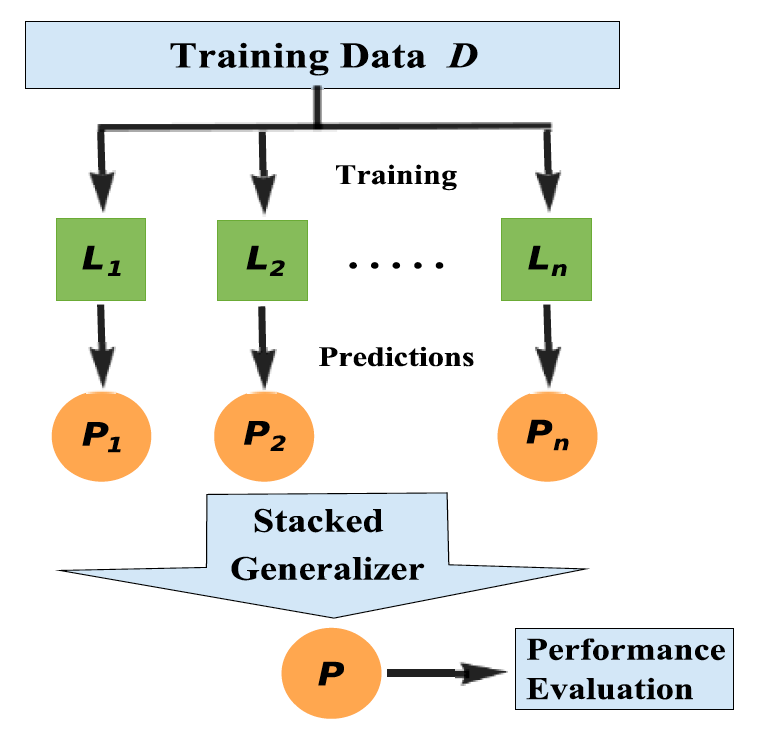We found that two ensemble models, XGBoost [6] and LightGBM [7] were superior to the other four models evaluated in our study. Ensemble learning [8] is a family of algorithms that seek to create a "strong" classifier based on a group of "weak" classifiers, where "strong" and "weak" refer to how accurately the classifiers can predict the target variable. L1, L2, … Ln are independent learners trained on the entire training data D. The stacked generalized [9] is a logistic regression model trained to produce a final prediction P based on the decisions from individual classifiers. Model performance is measured using the final predictions.