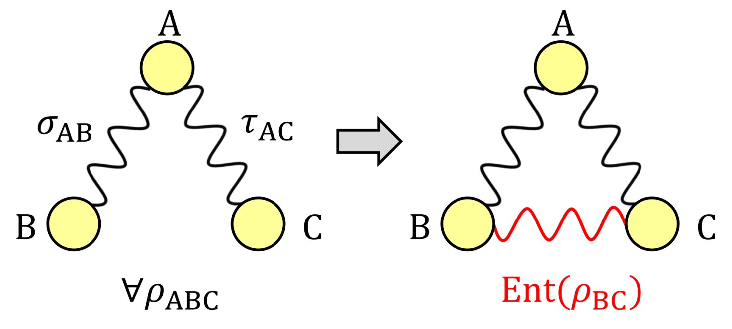 To see why we call it transitivity, consider a simple example involving three particles A,B, and C. Suppose that the pair AB is in some entangled state σAB and the pair AC is in entangled state τAC. If from this information we can conclude that the pair BC must be entangled for any possible global state for ABC, then we say that σAB and τAC exhibit transitivity in the marginal subsystem BC.